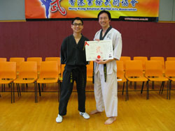 領取證書的同學,年紀最小的只有7歲,最大的已55歲了,相距差不多48年!但他們並沒有因為年齡而有任何隔膜,大家好像有說不完的考試經驗、失敗歷程、成功例子要互相交流!! 武術的確是一個不分年齡、性別、宗教及膚色的運動,我們「香港業餘武術協會」很榮幸能為各位武術愛好者,提供一個良好的平台給每位發揮。